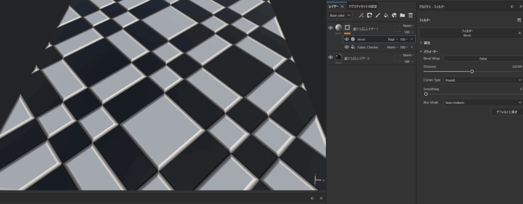 お好みで数値をいじれば、こんな感じでさっきよりも凹凸を目立たせることができます。ジャギが気になる場合はSmoothingの値をいじったり、上からブラーをかけて調整してみてください。