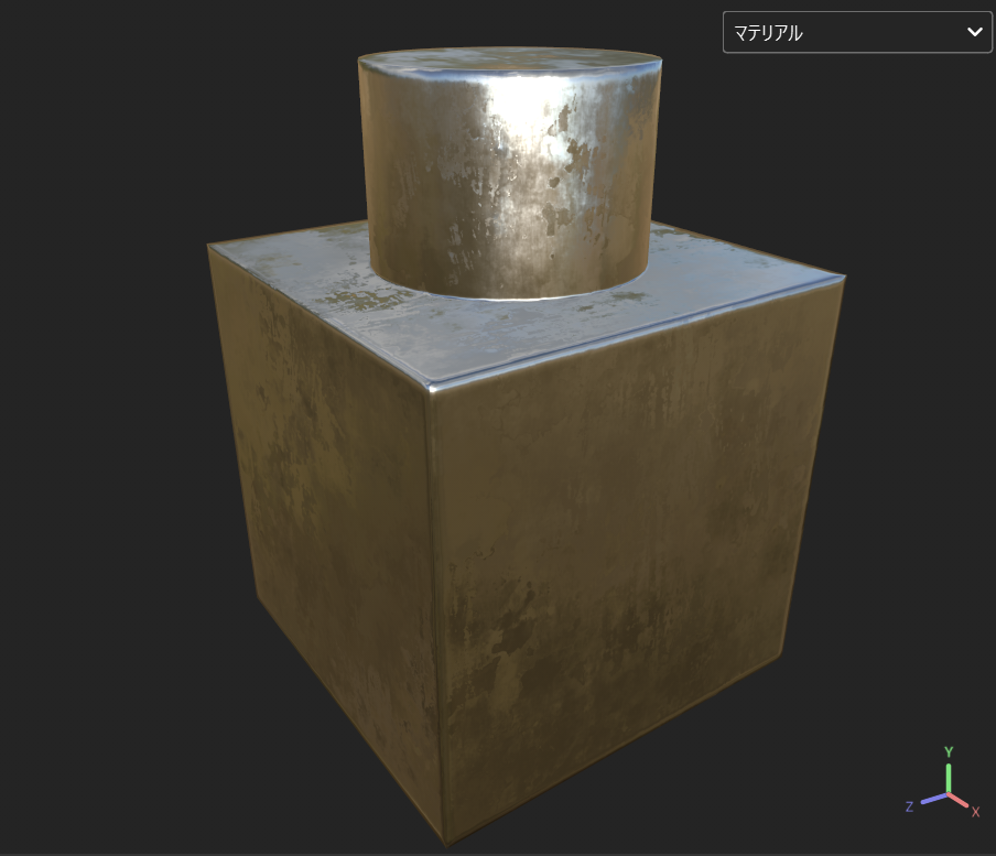 他にも、generator機能の”Metal Edge Wear”を使用することで角の摩耗表現を加えても良さそうです。