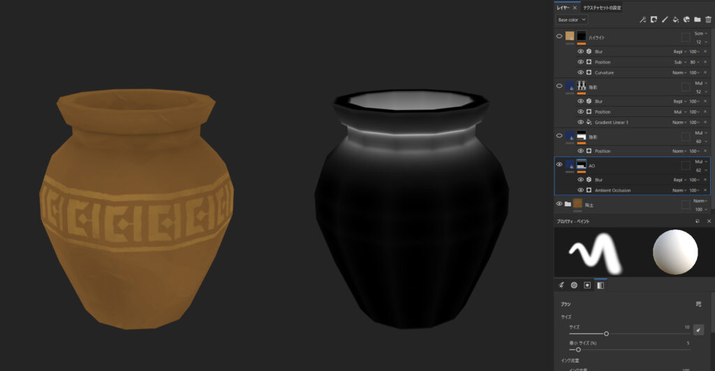 プロジェクトによってはエンジン側で補間されたり、マップとして出力することもありますが、ぼくの場合は接地感を強調するためにカラーへ反映したり、マスクとして活用することが多いです。
