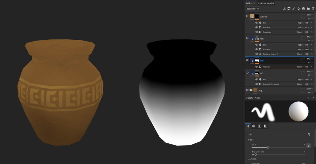 アセット全体にグラデーションをかけたいときに便利なジェネレーターです。こちらも接地感を強調するために、カラーへ描き込む際によく使用します。