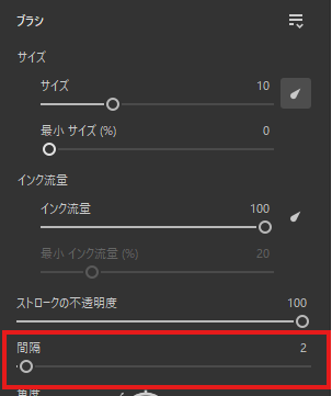 間隔は実際にペイントして様子を見ながら設定してみてください。