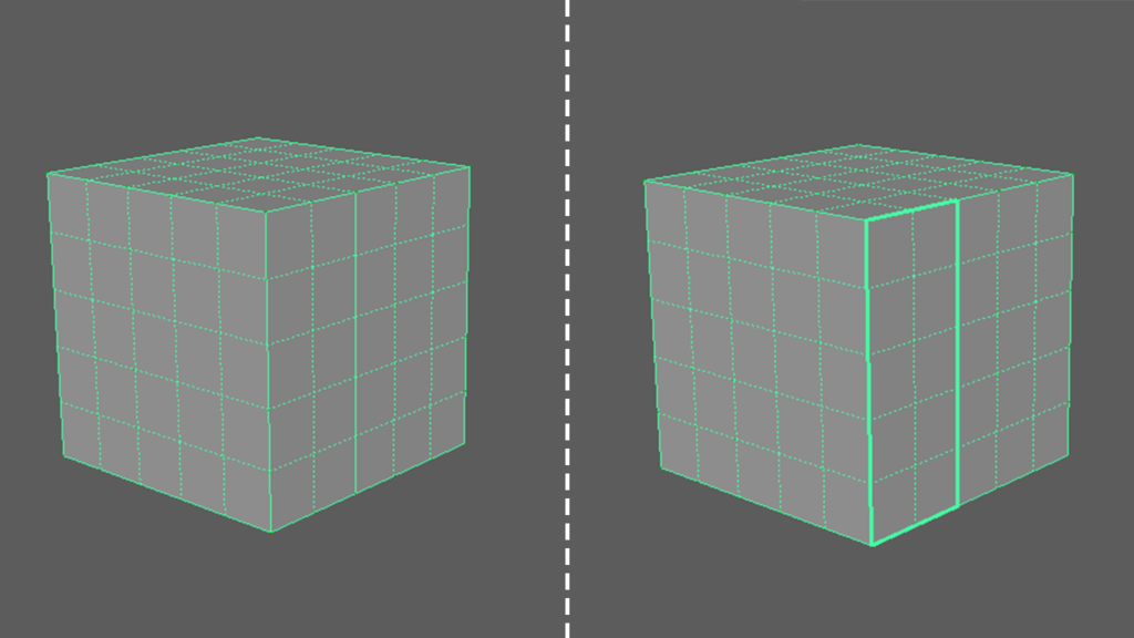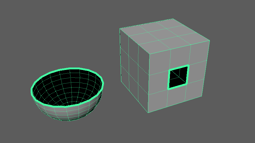 境界エッジとはポリゴンメッシュの外側、内側にあるエッジのことで、オブジェクトの切れ目にあたります。