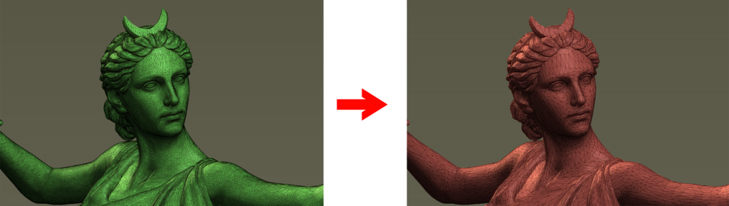 形を維持して三角形化するためポリゴンの流れを重要視するモデリングはうまく使えないので注意しましょう。
