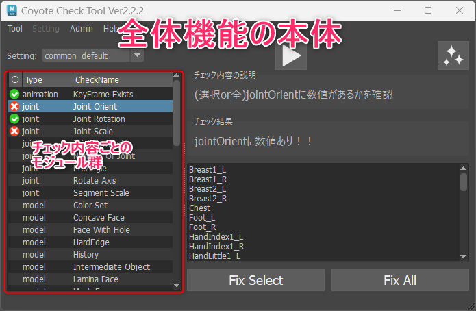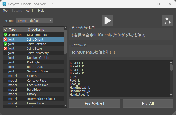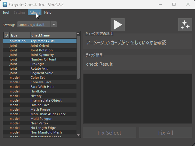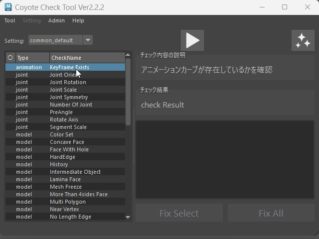 そんな中で最も使われているのがMayaのCoyoteチェックツールです。