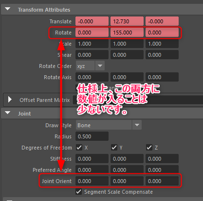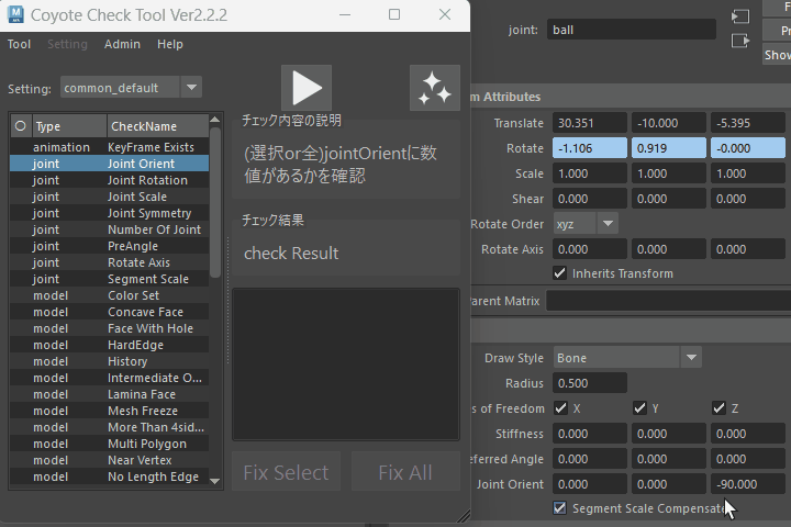【FIX All】ボタンの実行で「Joint Orient」の値を0にします。