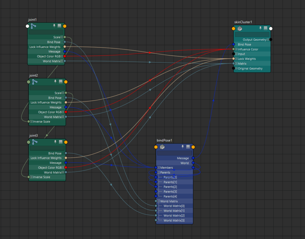 バインドポーズにはジョイントからなにかしらのマトリックスが接続によって受け渡されていることがわかりました。