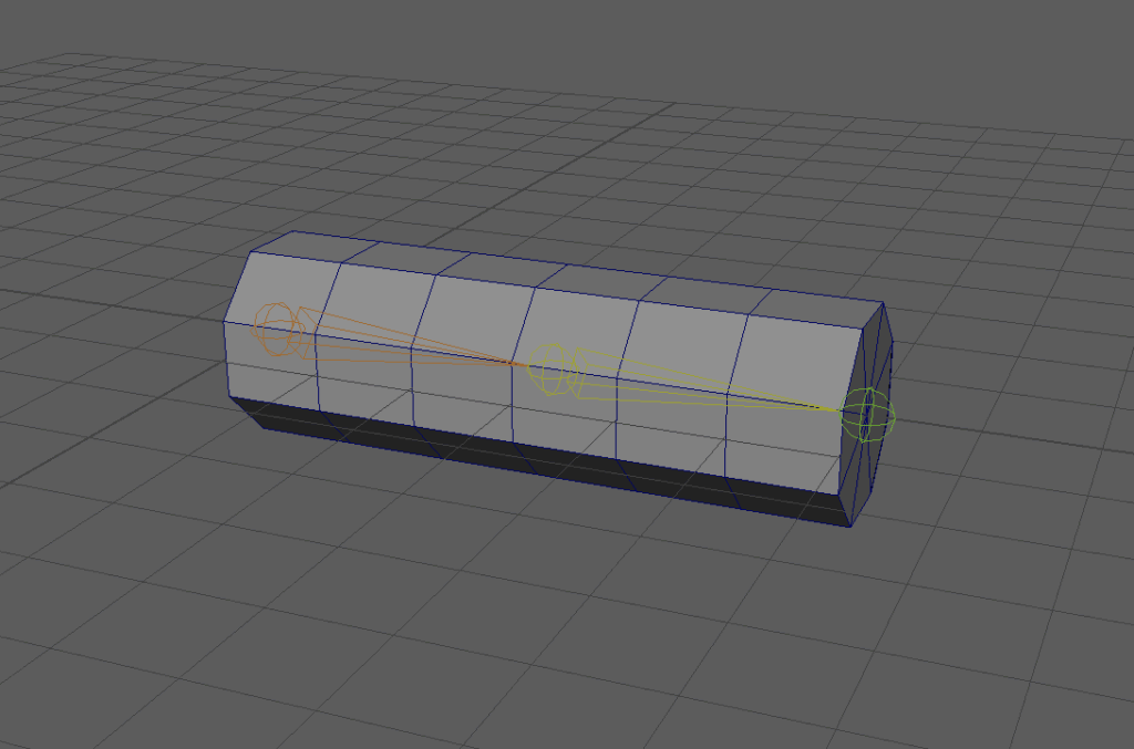 テストとして簡単なチューブのモデルを、3個のジョイントでバインドしてみました。