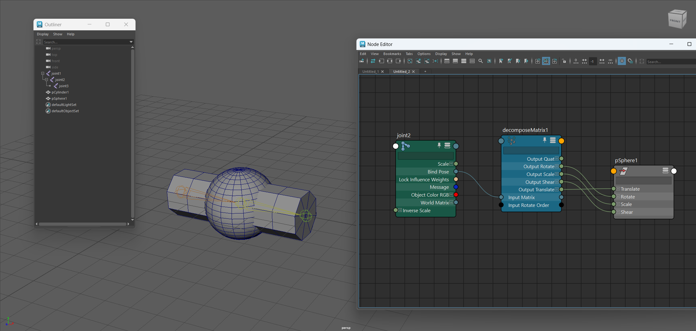 Sphereを作成して、マトリックスを分解してコネクションを行います。